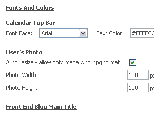 Preference SettingsYou are able to customize Web Blogger to your own preferences in the administration area. Choose to set your font, color, photo resize width and height, enable or disable your blog feature and so on. |