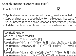 Search Engine Friendly URLBlog will dramatically increase your search engine ranking, but more important is to make sure that your blog system is search engine frinedly. Simply enable the feature at the back-end, and copy and paste the required code into the .htaccess file of your website to get it working. |
