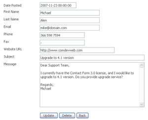 List of SubmissionsUpon submission, a copy will be sent to your email address. Also, you can view and search all the submissions posted by your visitors to your contact form. |