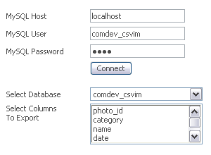 Export to CSVBeside importing data, you can also export the data to CSV format file. Connect to your database, select the table and choose the columns you wish to export. This feature is very useful if you want to update your database records quickly. Just export the data, update it with your spreadsheet program, then import it back to the database again. |