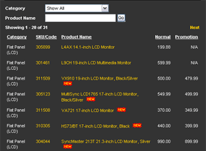 View Price ListBeside displaying your products as thumbnails, we also publish your product price list for your customers' reference. Price list can be accessed from the link at the product search area. |