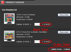 Shopping CartThe shopping cart will calculate the total amount, let your customers update the quantity, and remove any unwanted item before proceed to checkout. |