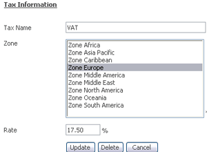 Country and Tax ZoneWe have a list of preset tax zones and countries available for you. However, you can still create new zone and edit it according to your needs. Input the tax percentage for automatic calculation in your shopping cart. |