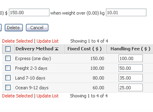 Delivery Methods, Handling Fee and WeightWhen it comes to product shipping, you can define different delivery methods for your customers. Then, input its handling fee and set the list of weight and charges applied. You can also choose to apply a fixed shipping cost at a certain price over a certain weight. |