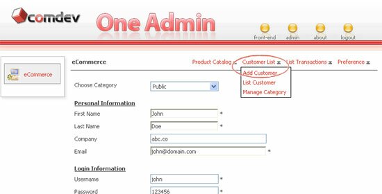 To add a customer, go to the Customer link > Add Customer. To begin, choose a category to place the customer under a specific group. Enter his/her personal info, create user login info. for accessing Product Pricing page(s) and select the account status as Active.