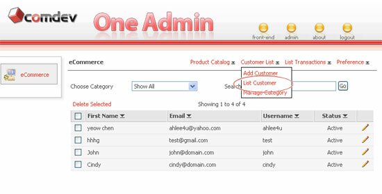 To view all your customers, go to the Customer link > click List Customer. You can shorten the list results base on the category or search by first name. Click on the or to sort the list in descending or ascending order.