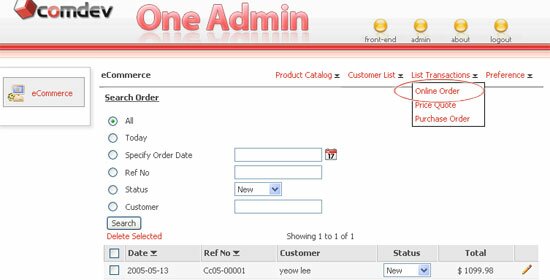 As we mentioned above, there are 3 types of payments that your customer can choose from. To view orders, go to Transaction link and select either Online Order, Price Quote or Purchase Order to view customer orders.
