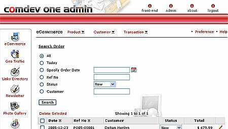 You can set order status either it is a New order, or it has been Replied, Shipped or Closed. To edit records, simply click the icon. (Note: The Edit page will be shown below)