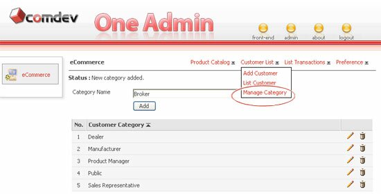 To add category, go to the Customer link > Manage Category. Enter a new Category Name and click on the Add button.