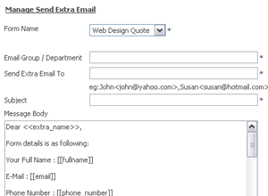 Personalize EmailsYou can create personalize emails to be sent to people that you wish them to receive the form submission data. You can enter the email addresses, subject and email body. |
