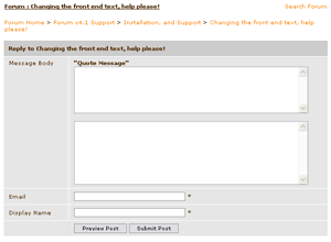 Post New TopicIf you would like to write a new post, simply type your topic, message, email and display name. If you have login to your Forum user account, you do not need to type in your display name and email. |