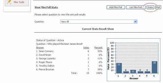 List out mini poll :Your entire mini poll that you've created will display in the list. Questions with active status will be shown to the public on your website.