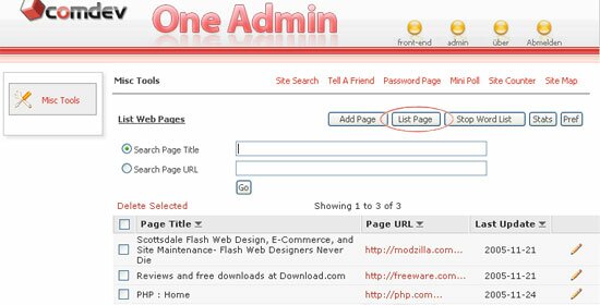 To list out the entire site search pages available, click 'List Page' button.