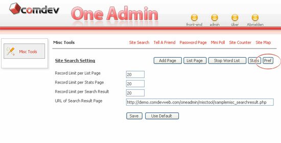 You can define the 'Record Limit per List Page', 'Record Limit per Search Result' and 'Statistics Page'. You can even change the search result URL, for eg. 'misctool_searchresult.php' or you can use default setting. Click 'Save' once you're done.