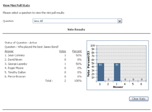 Poll ResultsAfter your poll has been running for some time, view the statistics that are autmatically generated in graph for you. |