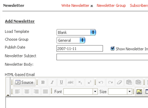 Create Your NewsletterYou can create your newsletter in both HTML and Text format. Choose your newsletter group, enter the publish date, subject and check whether to show the newsletter in archive. Then write your newsletter using the richtext editor and textarea. |