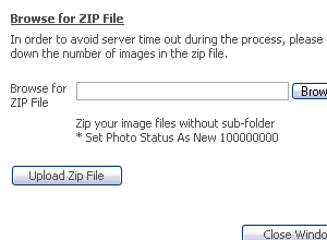 Method 1: Using ZIP FileUsing Method 1, you will need to compress all the photo files in ZIP format and upload the ZIP file. The script will then process each photo in the ZIP file and enter its details in your photo album. This method has a file size limitation as controlled by your server configuration. |